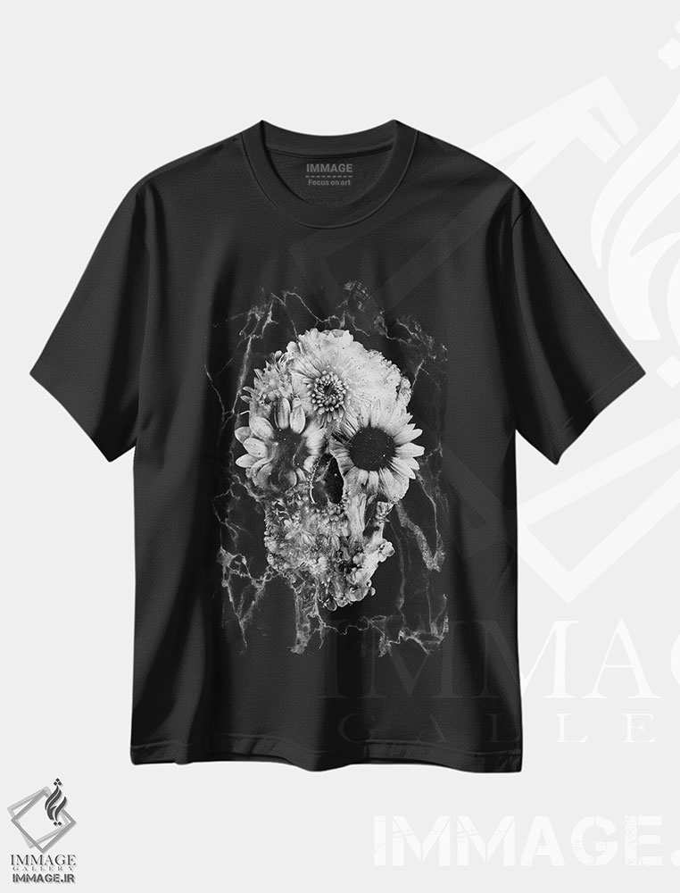 تیشرت طرح دار جمجمه پرگل، دکوراسیون جایگزین اثر علی گولچ | فروشگاه ایماژ
