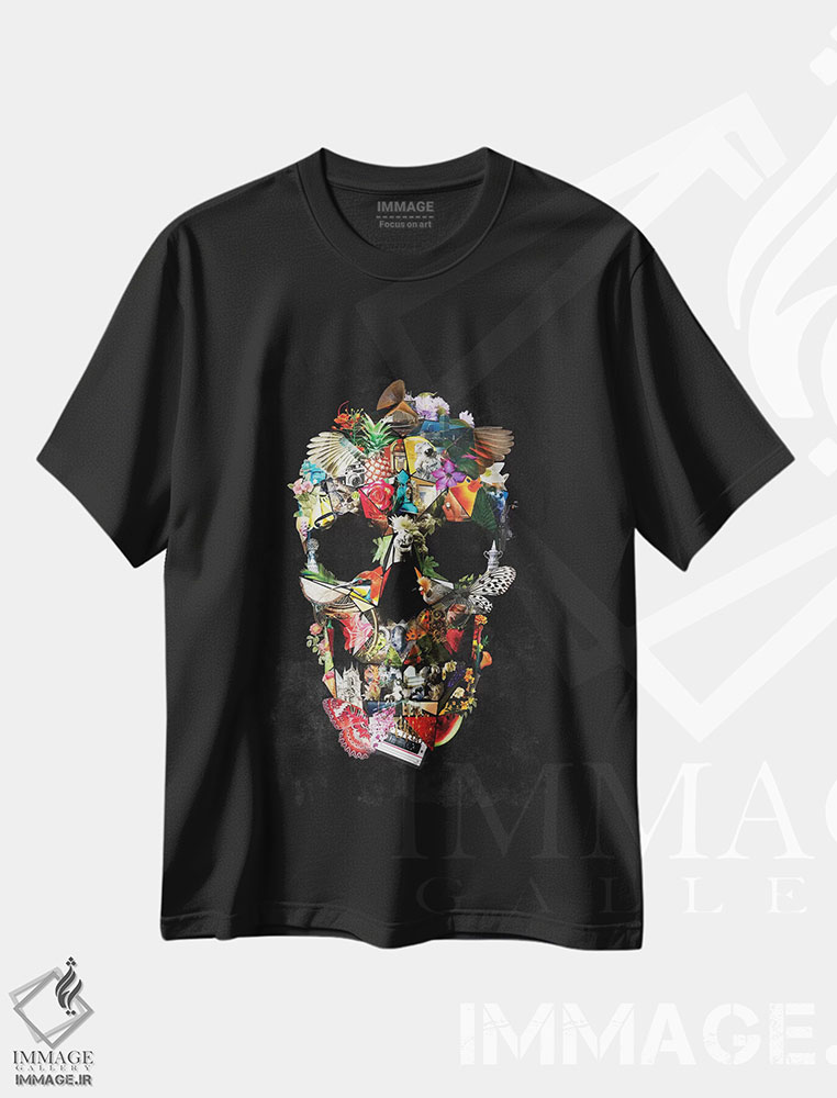 تیشرت طرح دار جمجمه باغی، دکوراسیون جایگزین اثر علی گولچ | فروشگاه ایماژ