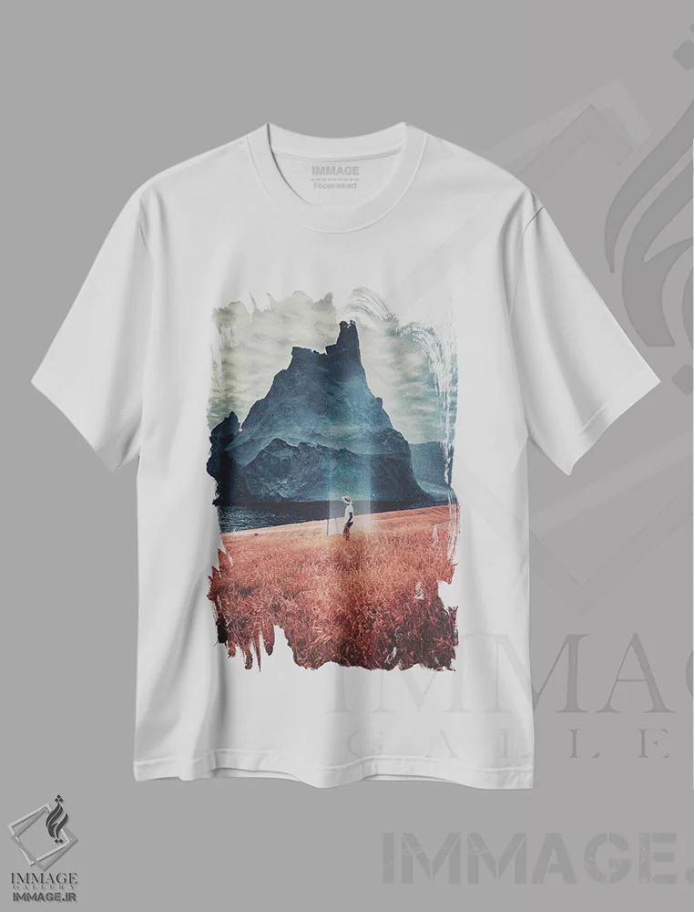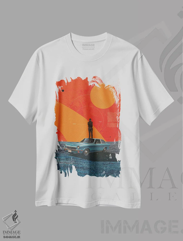 تیشرت سفید طرح دار "عزیمت"، هنر فاخر معاصر اثر فرانک موس | فروشگاه ایماژ تیشرت طرح دار "عزیمت" اثر فرانک موس