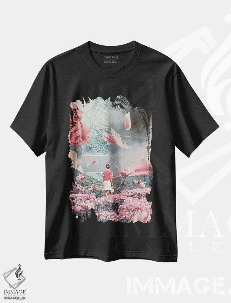 تیشرت مشکی طرح دار "شکوفه"، هنر فاخر معاصر اثر فرانک موس | فروشگاه ایماژ تیشرت طرح دار "شکوفه" اثر فرانک موس