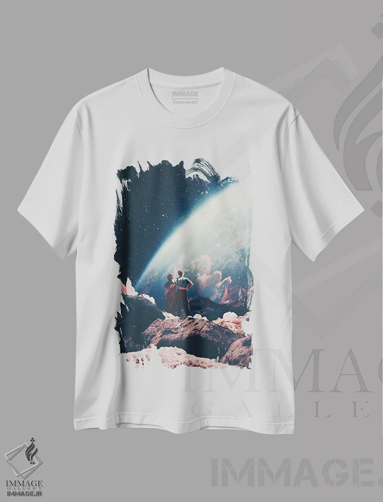 تیشرت سفید طرح دار "آندرومدا"، هنر فاخر معاصر اثر فرانک موس | فروشگاه ایماژ تیشرت طرح دار "آندرومدا" اثر فرانک موس