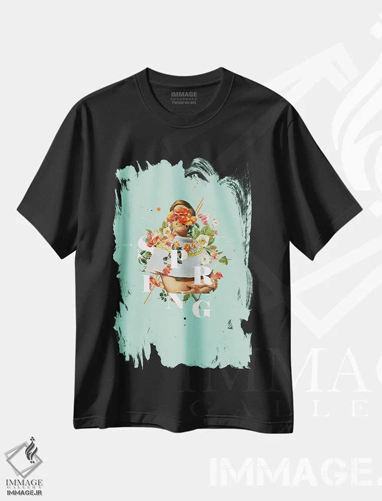 تیشرت مشکی طرح دار "بهار"، هنر فاخر معاصر اثر فرانک موس | فروشگاه ایماژ تیشرت طرح دار "بهار" اثر فرانک موس