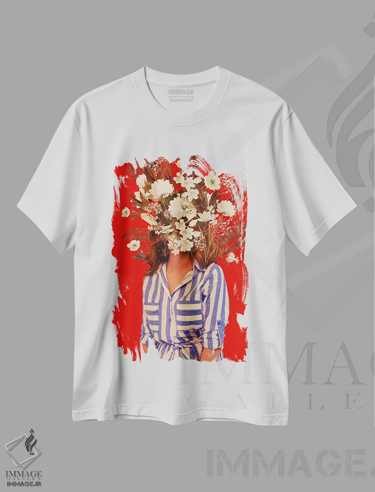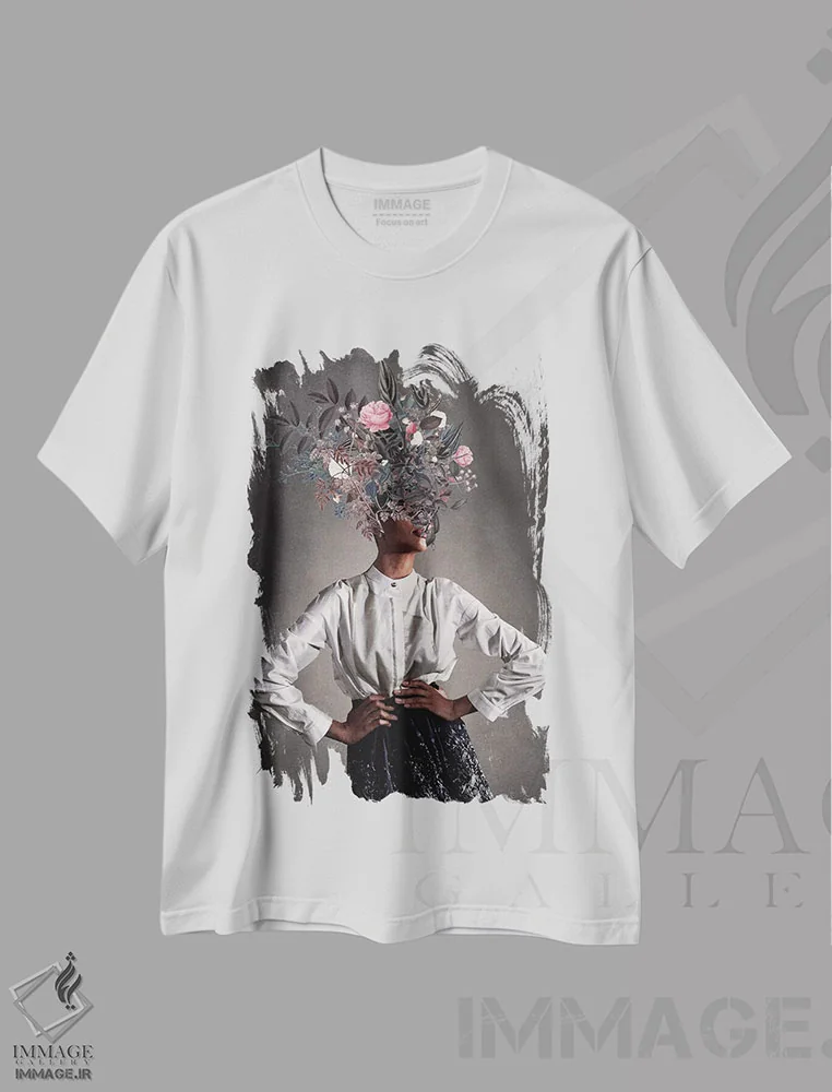 تیشرت سفید طرح دار "شکوفه سربی"، دکوراسیون جایگزین اثر فرانک موس | فروشگاه ایماژ تیشرت طرح دار "شکوفه سربی" اثر فرانک موس