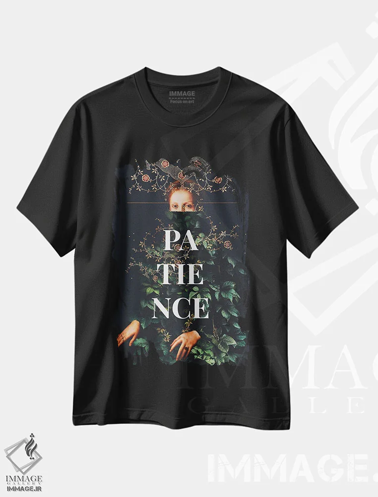 تیشرت مشکی طرح دار "صبر"، هنر فاخر معاصر اثر فرانک موس | فروشگاه ایماژ تیشرت طرح دار "صبر" اثر فرانک موس