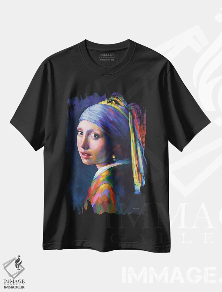 تیشرت طرح دار دختر با گوشواره مروارید، ادای احترام به ورمیر اثر لئون دوونیس