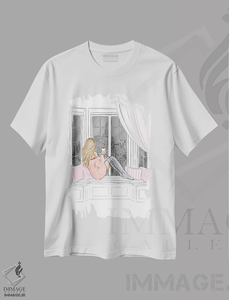 تیشرت سفید طرح دار کمد؛ دختر بلوند، مدیوم اثر لالانا آرتس | فروشگاه ایماژ