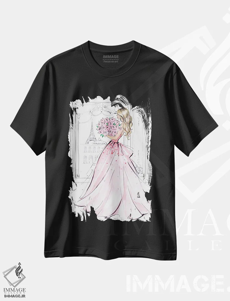 تیشرت مشکی طرح دار لباس رز صورتی، مدیوم اثر لالانا آرتس | فروشگاه ایماژ