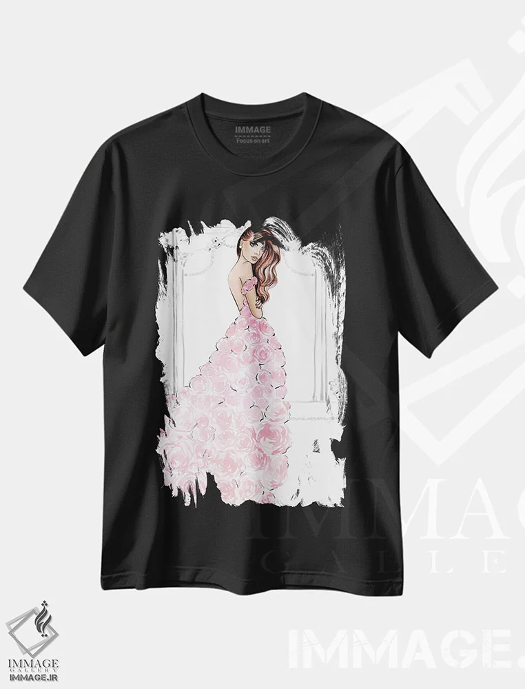تیشرت طرح دار پیراهن رز؛ دختر مشکی مو اثر لالانا آرتس