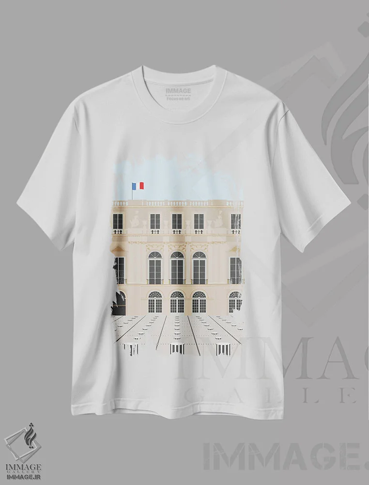 تیشرت سفید طرح دار "پاریس، فرانسه ستون های بورن، قصر رویال"، تزئینی اثر لایمن کریتیو کو. | فروشگاه ایماژ تیشرت طرح دار "پاریس، فرانسه ستون های بورن، قصر رویال" اثر لایمن کریتیو کو.