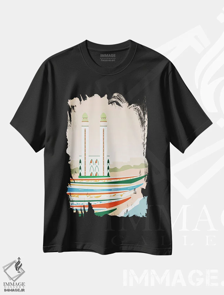 تیشرت مشکی طرح دار "خزانهٔ پترا"، تزئینی اثر لایمن کریتیو کو. | فروشگاه ایماژ تیشرت طرح دار "خزانهٔ پترا" اثر لایمن کریتیو کو.