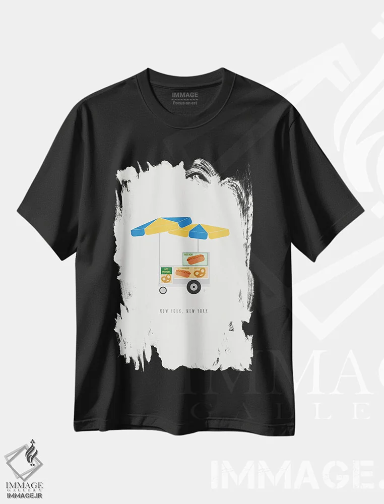 تیشرت مشکی طرح دار "گاری هات داگ نیویورک"، تزئینی اثر لایمن کریتیو کو. | فروشگاه ایماژ تیشرت طرح دار "گاری هات داگ نیویورک" اثر لایمن کریتیو کو.