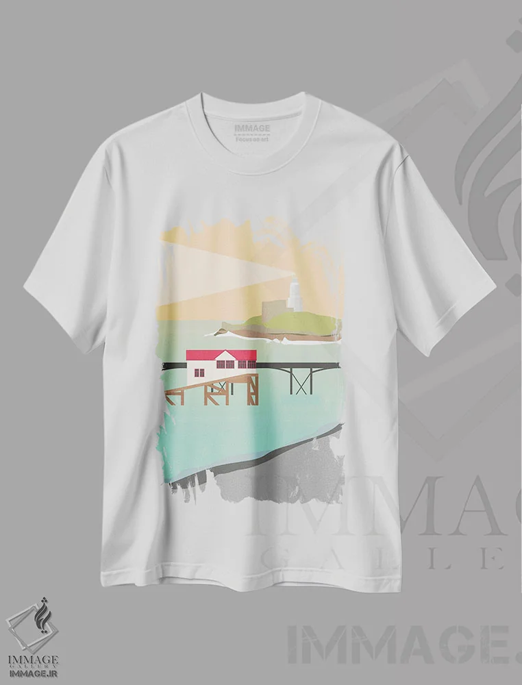 تیشرت سفید طرح دار آثار لایمن کریتیو کو. - immage.ir تیشرت طرح دار "اسکله مامبلز و فانوس دریایی، خلیج سوانزی، ولز جنوبی" اثر لایمن کریتیو کو.