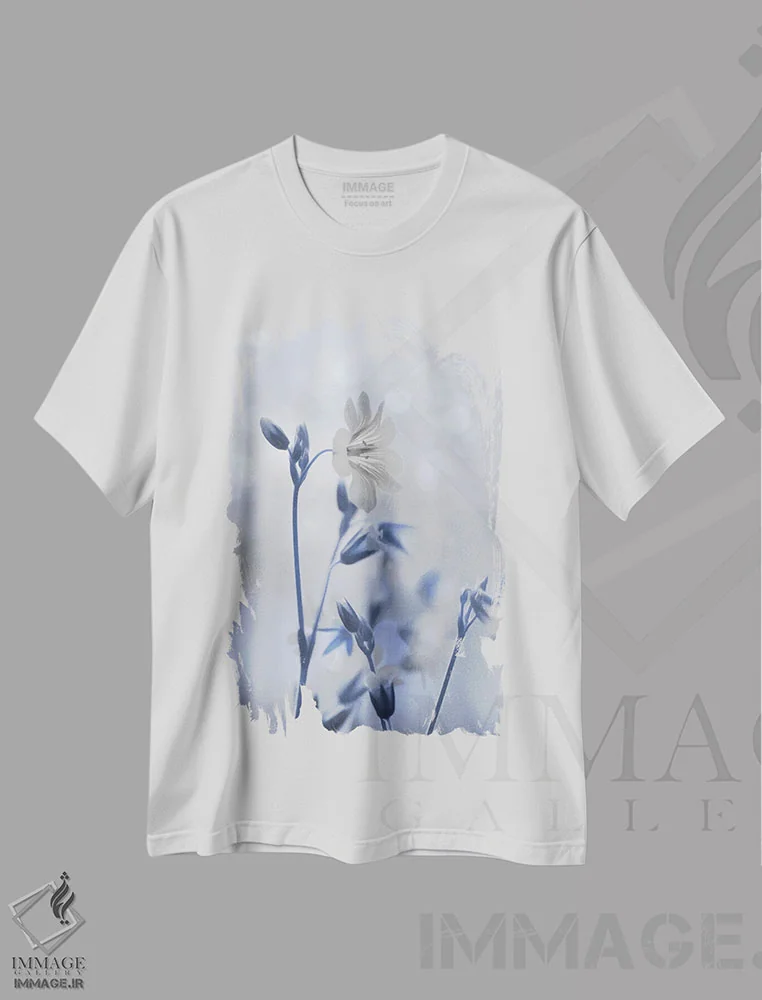 تیشرت سفید طرح دار گل های آبی و سفید ۲، مدیوم اثر لری دیتِر | فروشگاه ایماژ تیشرت طرح دار گل های آبی و سفید اثر لری دیتِر