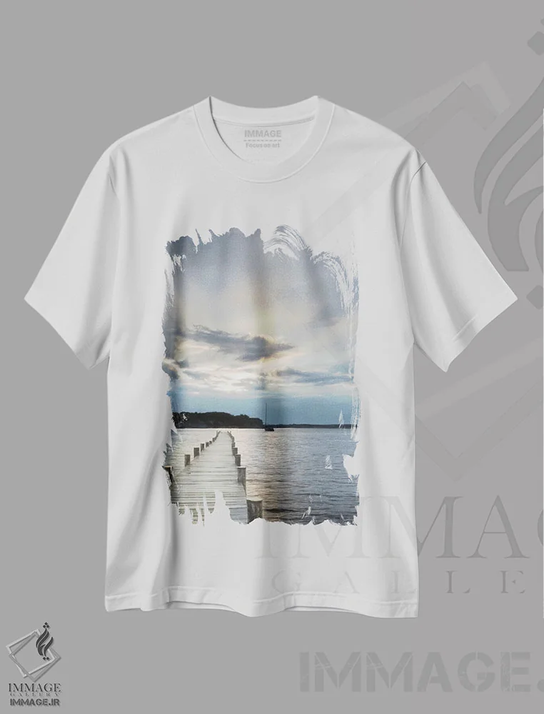 تیشرت سفید طرح دار غروب در خلیج، مدیوم اثر لری دیتِر | فروشگاه ایماژ تیشرت طرح دار غروب در خلیج اثر لری دیتِر