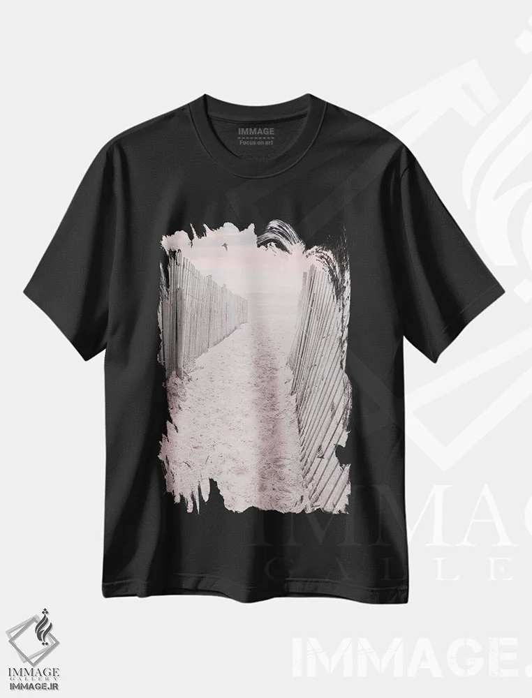 تیشرت مشکی طرح دار طلوع ساحل صورتی، دکور ساحلی اثر لری دیتِر | فروشگاه ایماژ تیشرت طرح دار طلوع ساحل صورتی اثر لری دیتِر