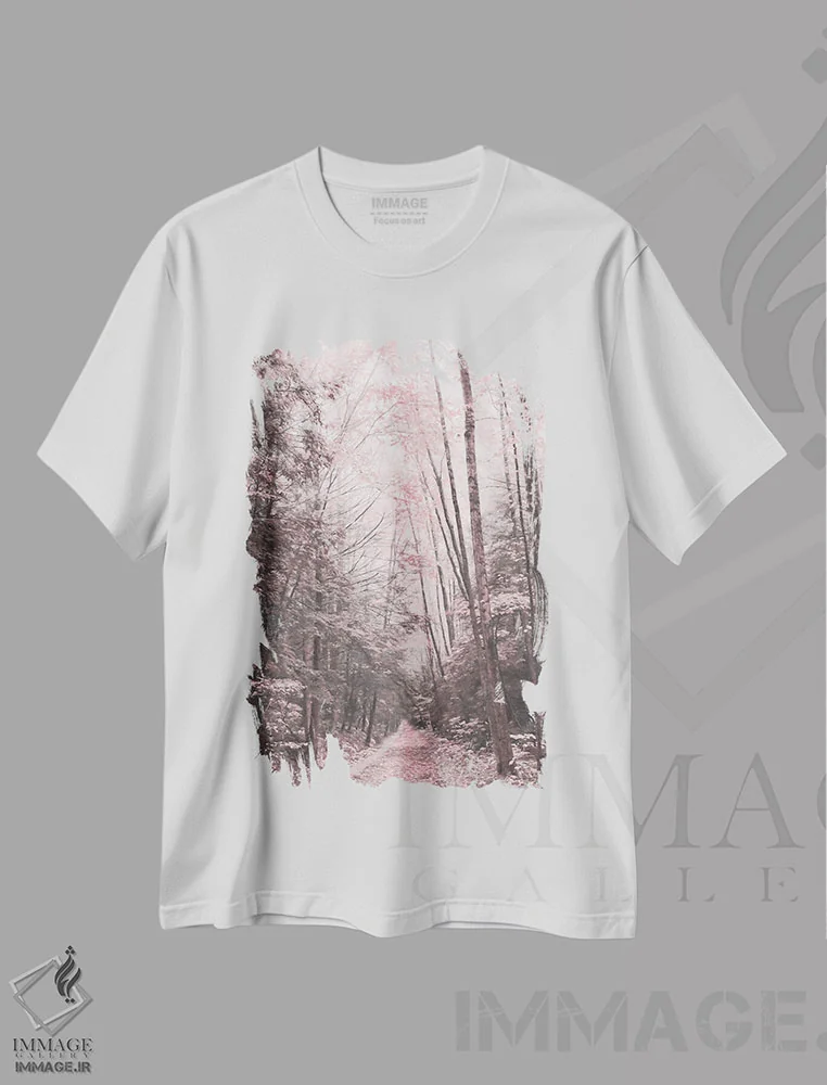 تیشرت سفید طرح دار "جنگل صورتی"، مدیوم اثر لری دیتِر | فروشگاه ایماژ تیشرت طرح دار "جنگل صورتی" اثر لری دیتِر