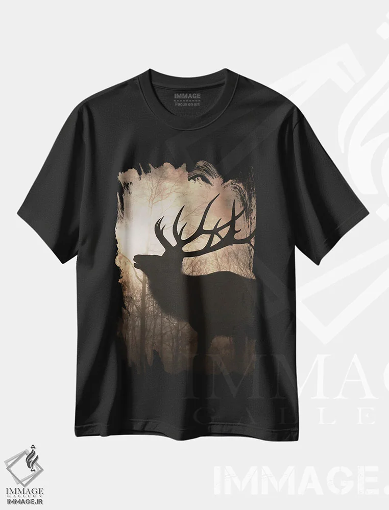 تیشرت مشکی طرح دار "طلوع ماهی شاخدار II"، دکور روستایی اثر لری دیتِر | فروشگاه ایماژ تیشرت طرح دار "طلوع ماهی شاخدار II" اثر لری دیتِر