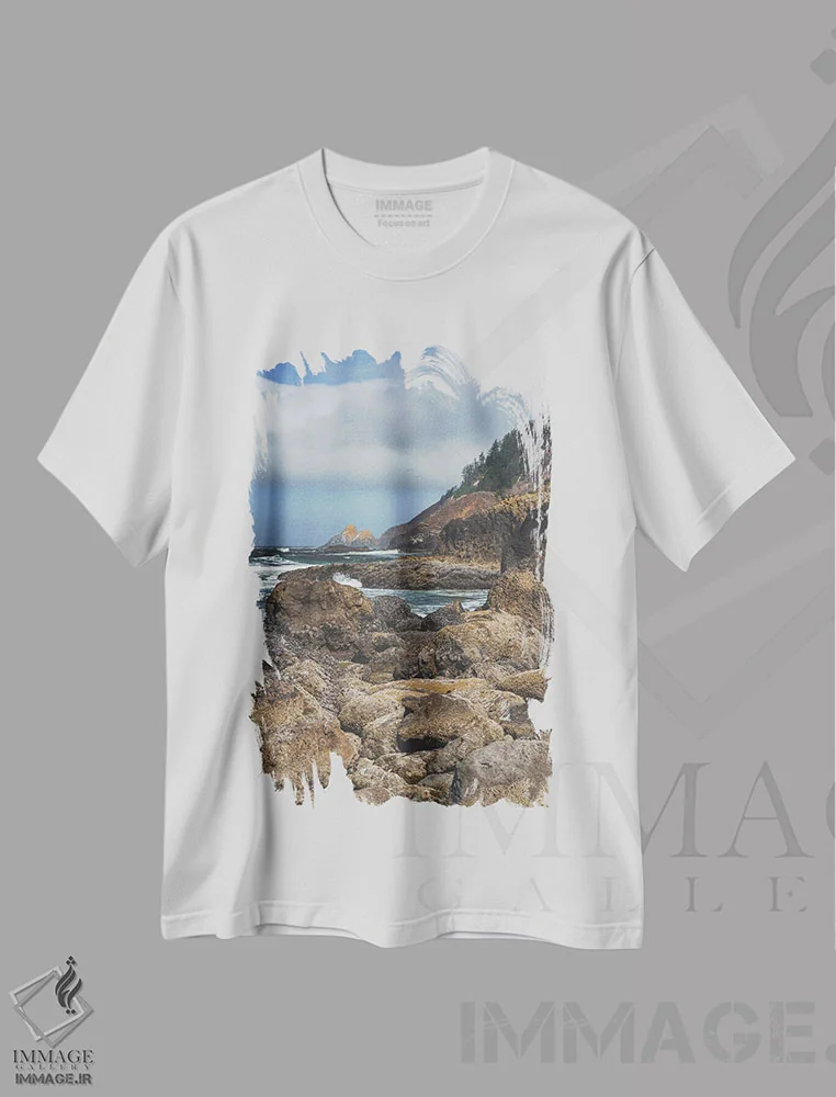 تیشرت سفید طرح دار – تیشرت منظره ,تشکیلات سنگی پیشاتاریخی اثر لوئیس راث فروشگاه ایماژ تیشرت طرح منظره ,تشکیلات سنگی پیشاتاریخی اثر لوئیس راث