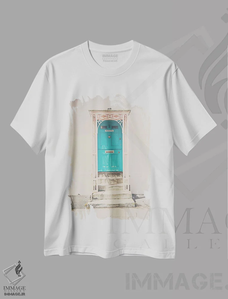 تیشرت سفید طرح دار دری سبز در ونیز، تزئینی اثر لورا ایوانز | فروشگاه ایماژ تیشرت طرح دار دری سبز در ونیز اثر لورا ایوانز