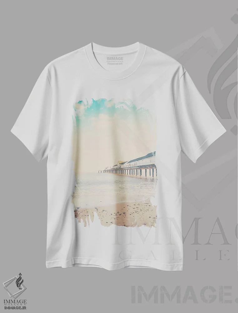 تیشرت سفید طرح دار اسکله ساوت وُلد، دکور ساحلی اثر لورا ایوانز | فروشگاه ایماژ تیشرت طرح دار اسکله ساوت وُلد اثر لورا ایوانز