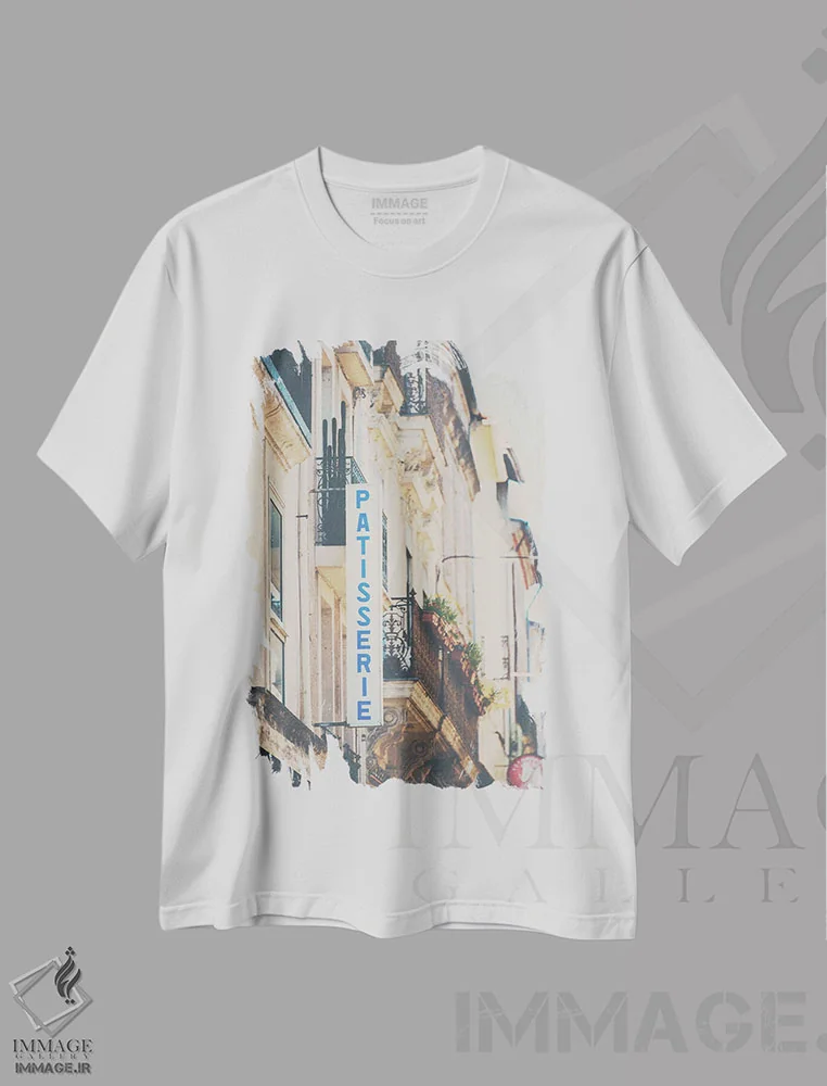 تیشرت سفید طرح دار شیرینی فروشی فرانسوی، تزئینی اثر لورا ایوانز | فروشگاه ایماژ تیشرت طرح دار شیرینی فروشی فرانسوی اثر لورا ایوانز
