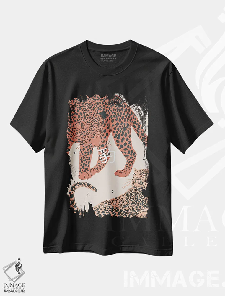 تیشرت مشکی طرح دار پلنگ ها، انیمه اثر لوسی میشل | فروشگاه ایماژ تیشرت طرح دار پلنگ ها اثر لوسی میشل
