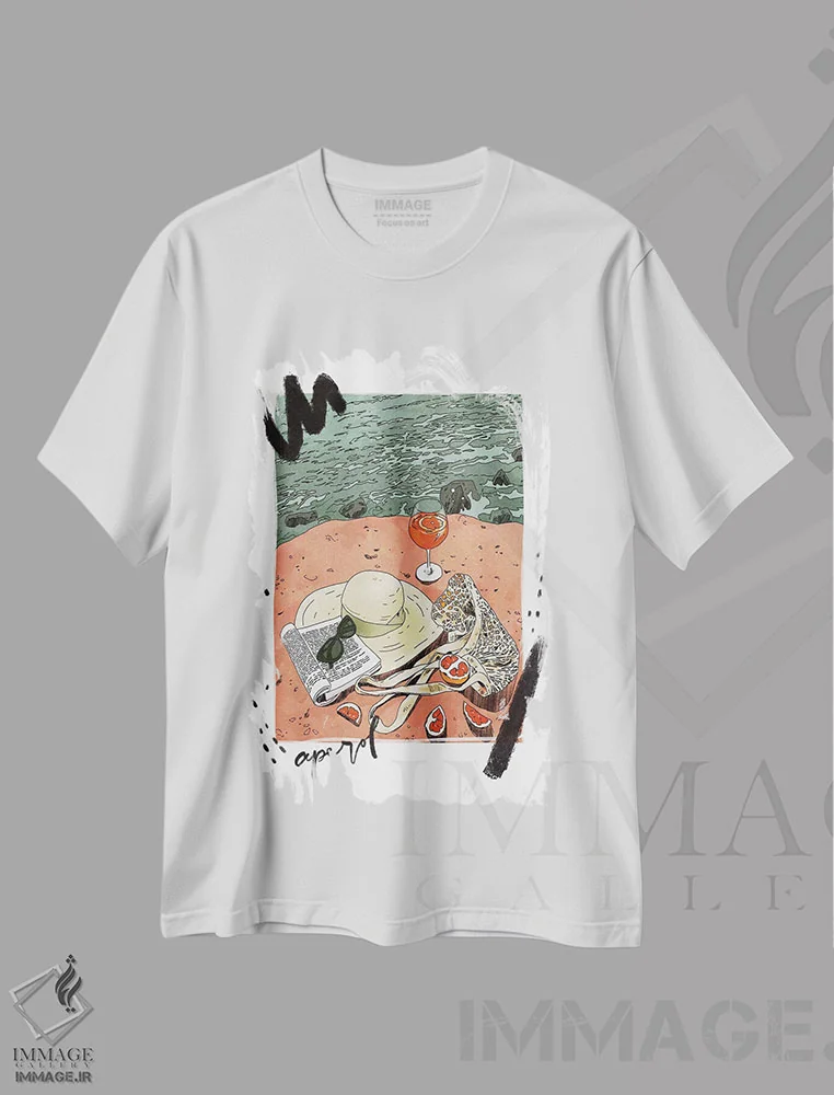 تیشرت سفید طرح دار عکس فوری، تزئینی اثر لوسی میشل | فروشگاه ایماژ تیشرت طرح دار عکس فوری اثر لوسی میشل