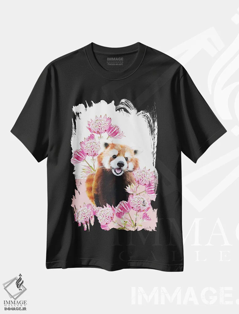 تیشرت مشکی طرح دار پاندای قرمز سافاری، هنر دیجیتال اثر لولا دیزاین | فروشگاه ایماژ