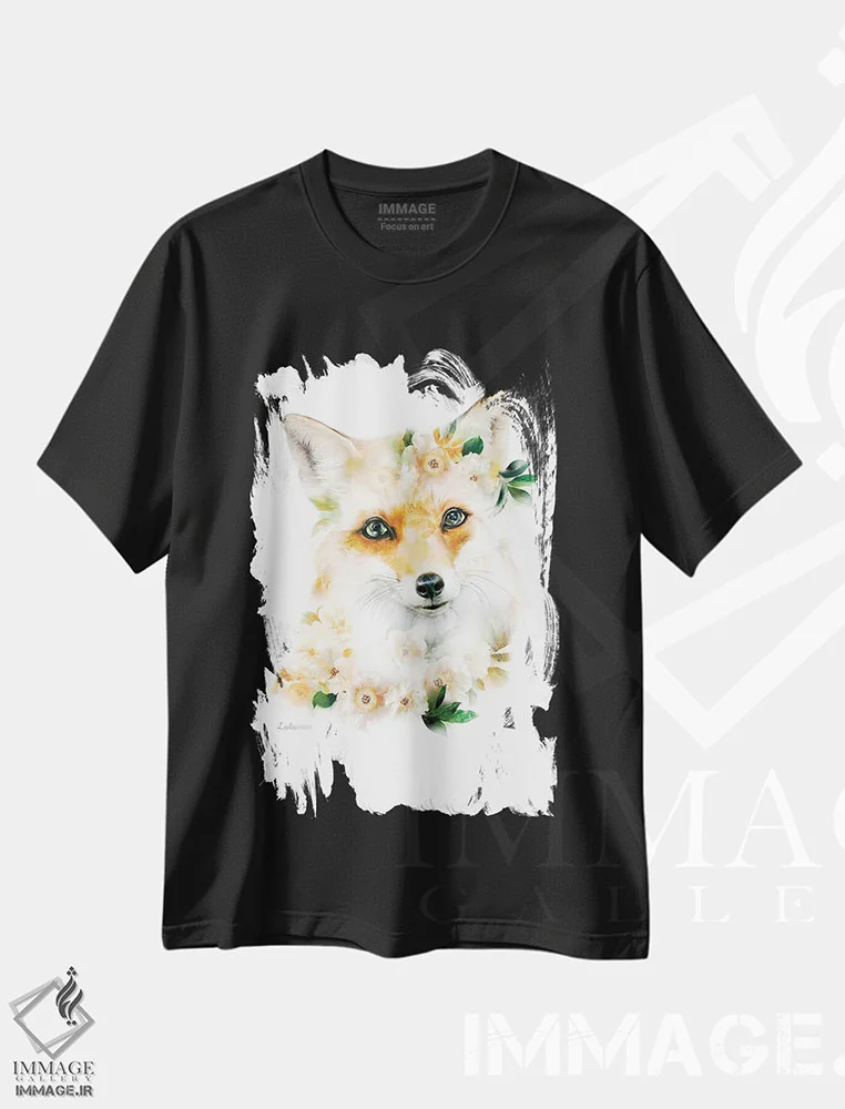 تیشرت مشکی طرح دار روباه گیاهی حیات وحش، هنر دیجیتال اثر لولا دیزاین | فروشگاه ایماژ