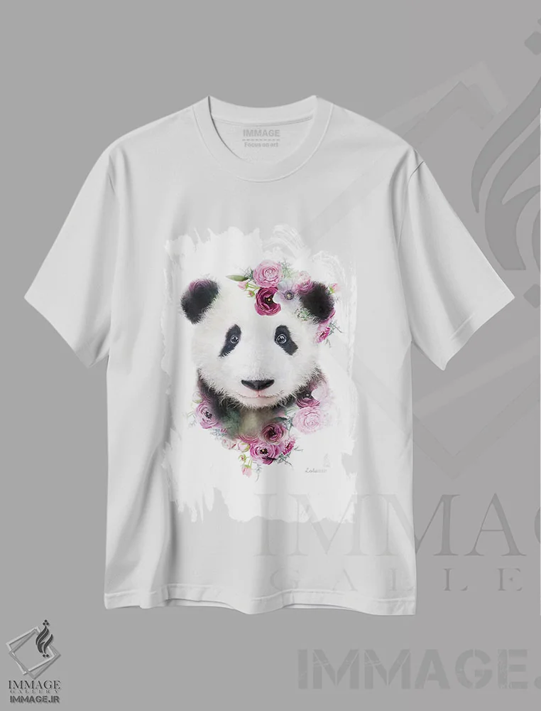 تیشرت سفید طرح دار پاندا گیاهی حیات وحش، هنر دیجیتال اثر لولا دیزاین | فروشگاه ایماژ