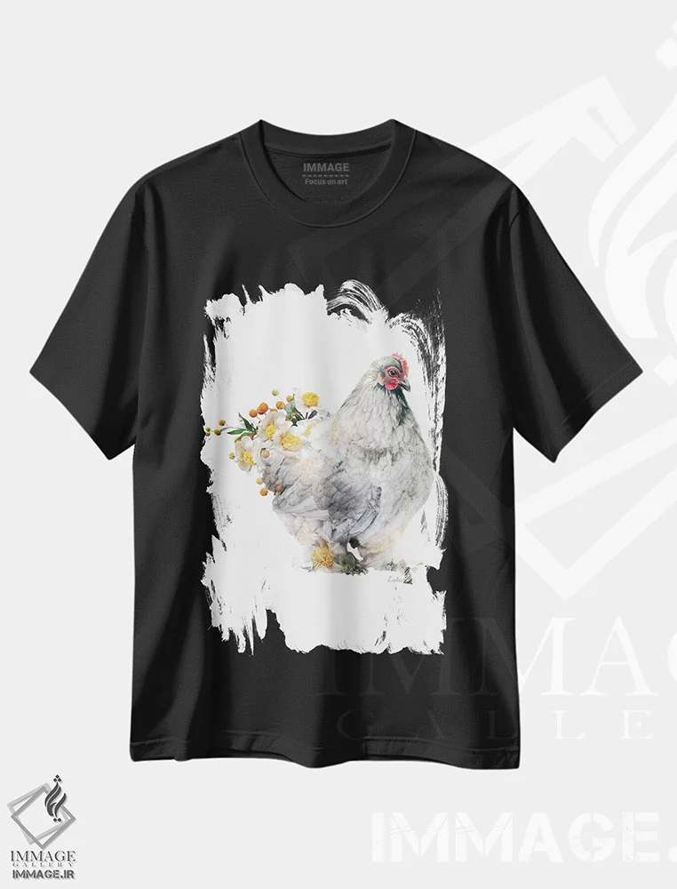 تیشرت طرح دار مرغ براهمای گیاهی حیات وحش اثر لولا دیزاین