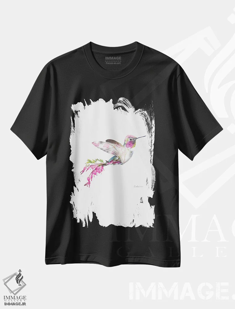 تیشرت طرح دار مرغ مگس خوار با تم گیاهی و حیات وحش اثر لولا دیزاین