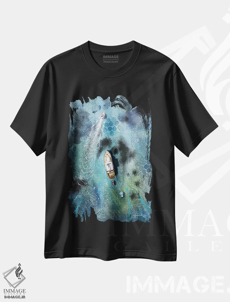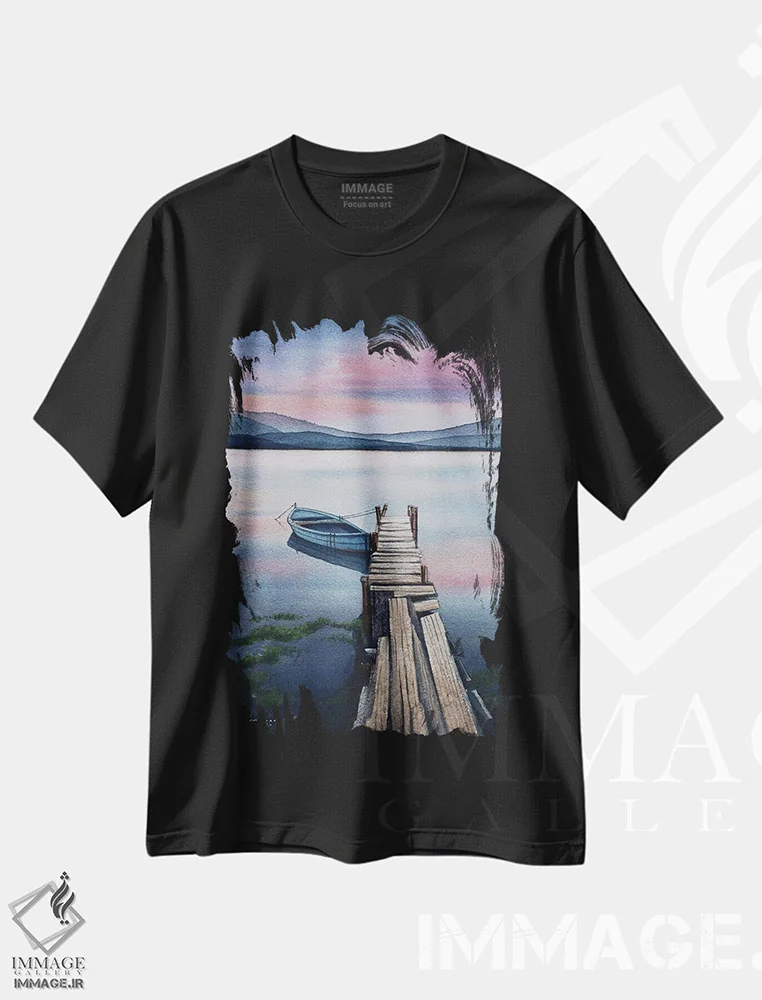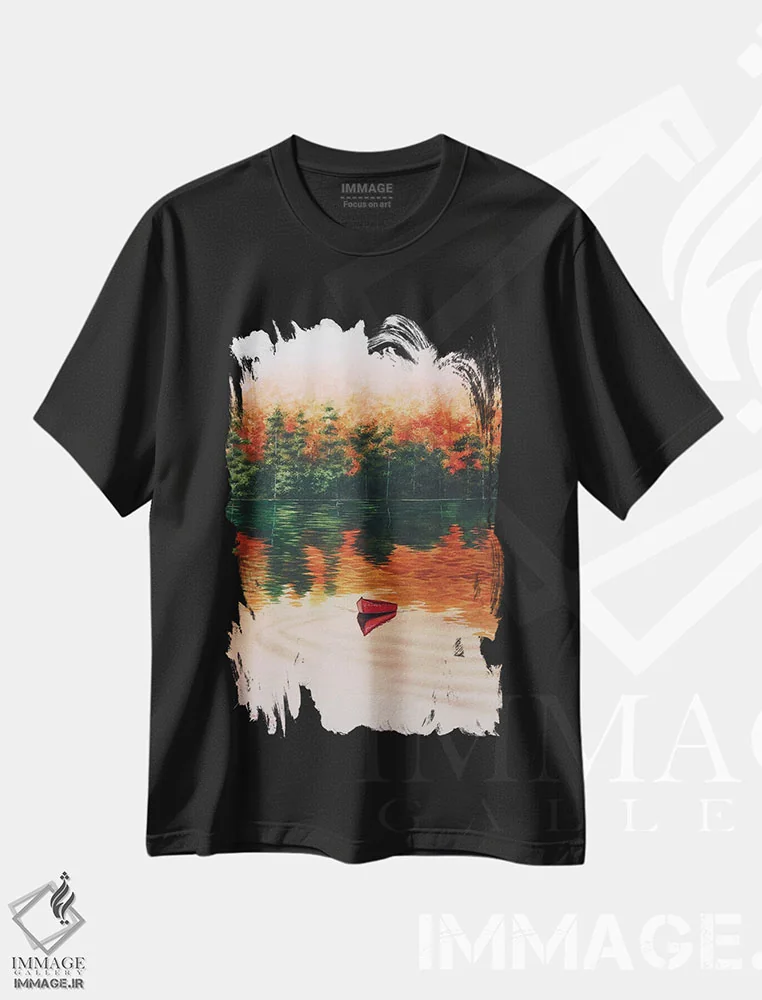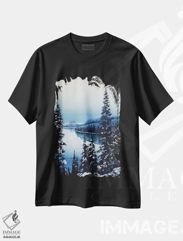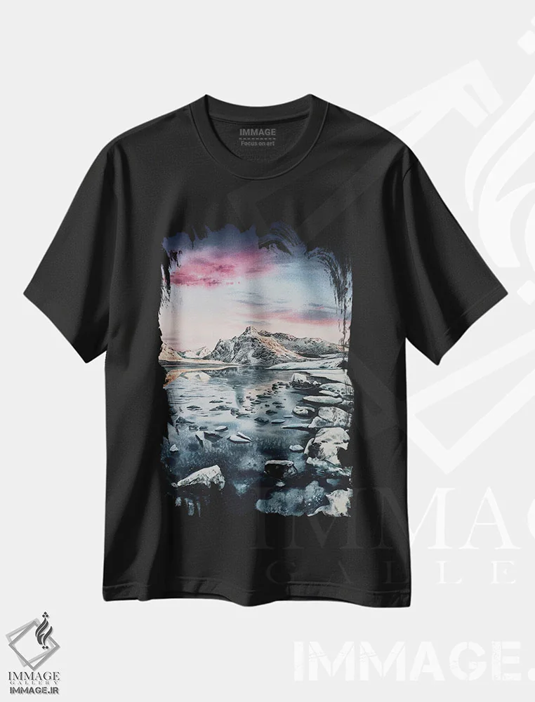 تیشرت مشکی طرح دار آرامش II، هنر فاخر معاصر اثر لیام کوموات | فروشگاه ایماژ تیشرت طرح دار آرامش II اثر لیام کوموات