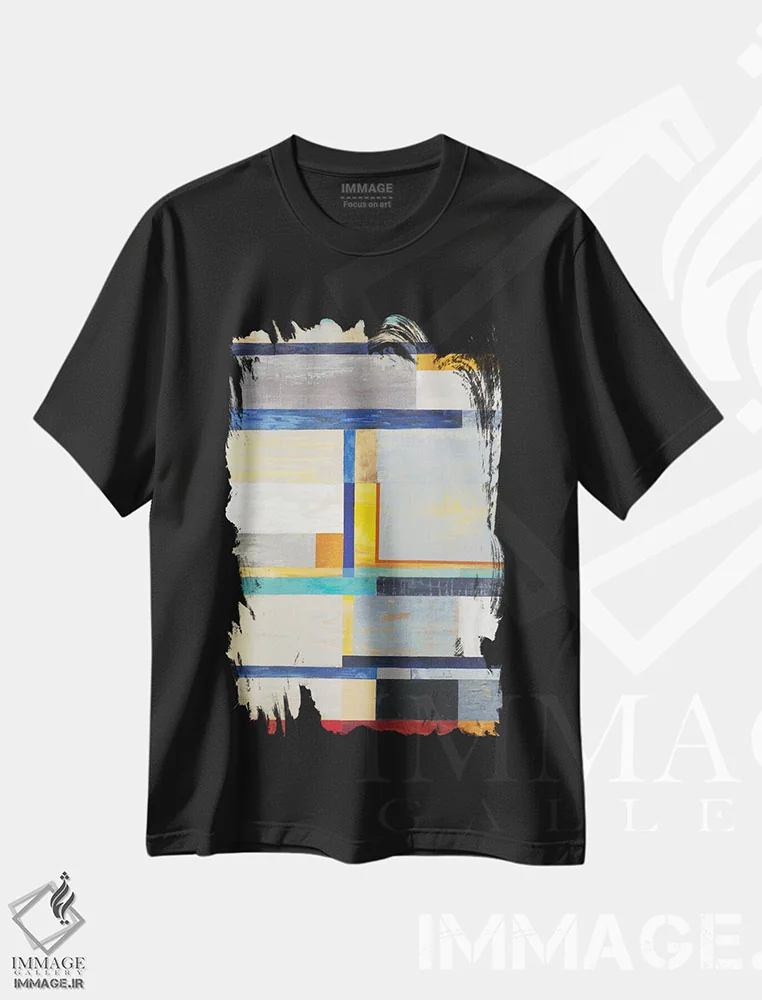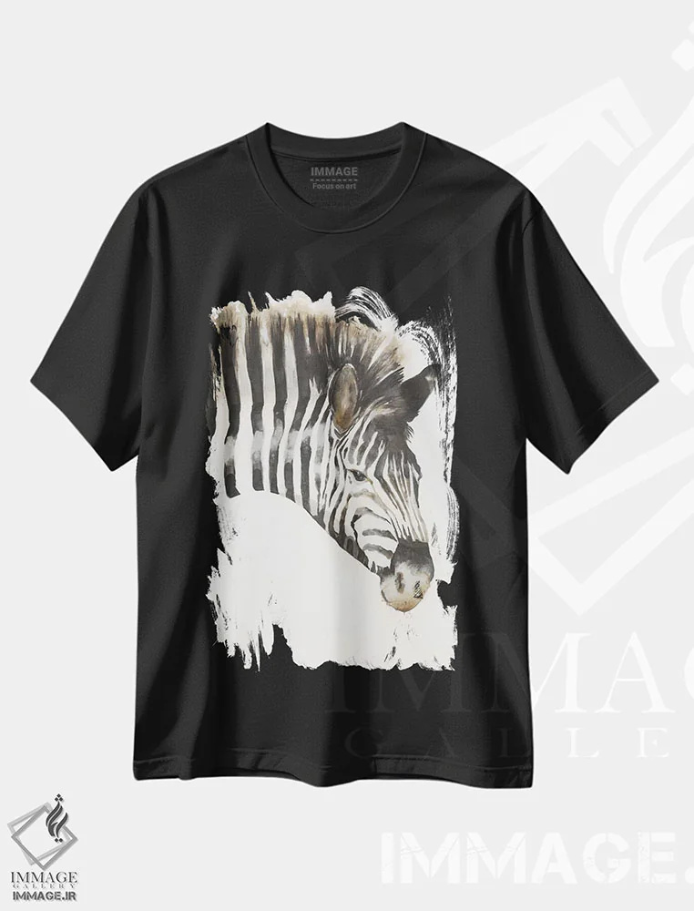 تیشرت مشکی طرح دار خطوط گورخری، دکور معاصر اثر لیز جاردین | فروشگاه ایماژ تیشرت طرح دار خطوط گورخری اثر لیز جاردین