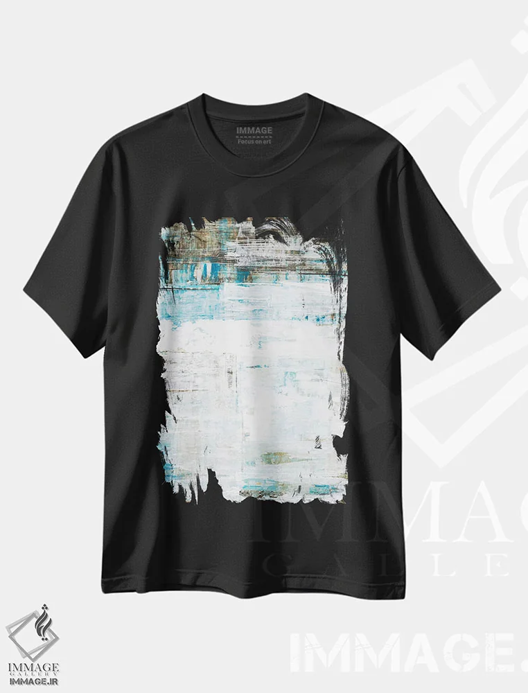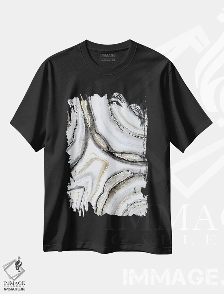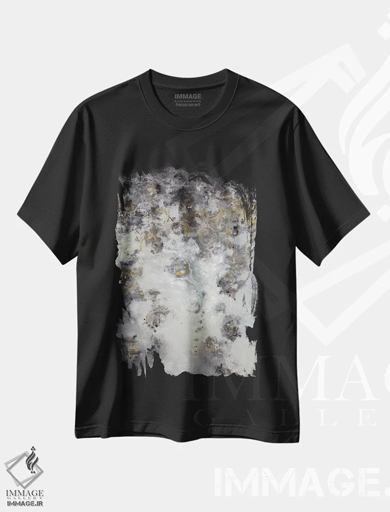 تیشرت مشکی طرح دار سایه های خاکستری، آبستره اثر لیز جاردین | فروشگاه ایماژ تیشرت طرح دار سایه های خاکستری اثر لیز جاردین