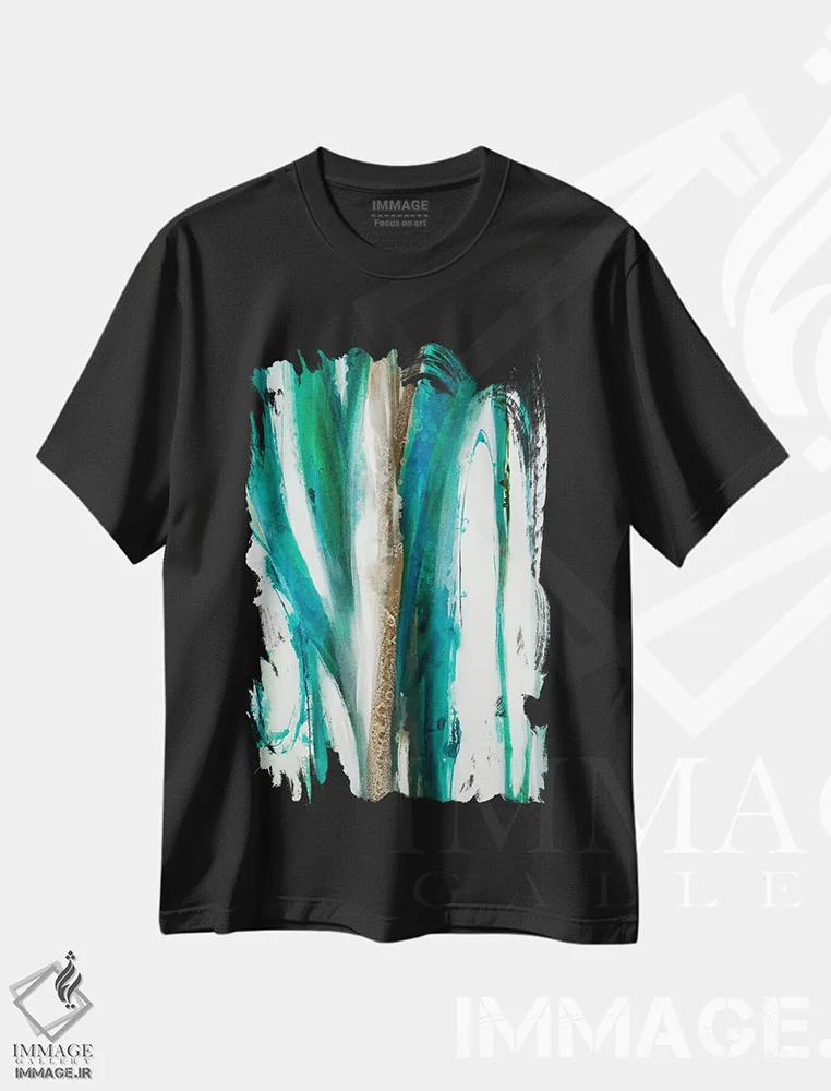 تیشرت مشکی طرح دار ریتم جزیره، آبستره اثر لیز جاردین | فروشگاه ایماژ تیشرت طرح دار ریتم جزیره اثر لیز جاردین