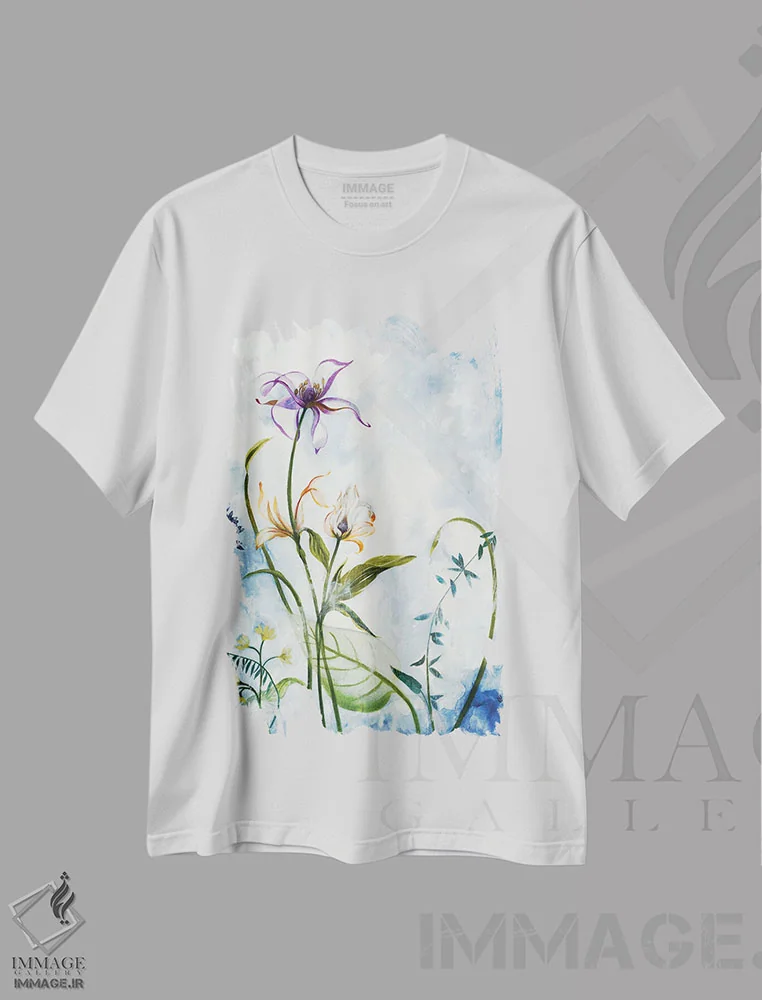 تیشرت سفید طرح دار سبک سطح بالا ۲ اثر لیز جاردین | فروشگاه ایماژ تیشرت طرح دار سبک سطح بالا اثر لیز جاردین