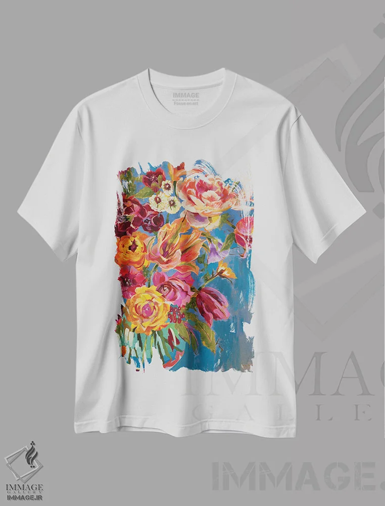 تیشرت سفید طرح دار دسته گل بهاری، مدیوم اثر لیز جاردین | فروشگاه ایماژ تیشرت طرح دار دسته گل بهاری اثر لیز جاردین
