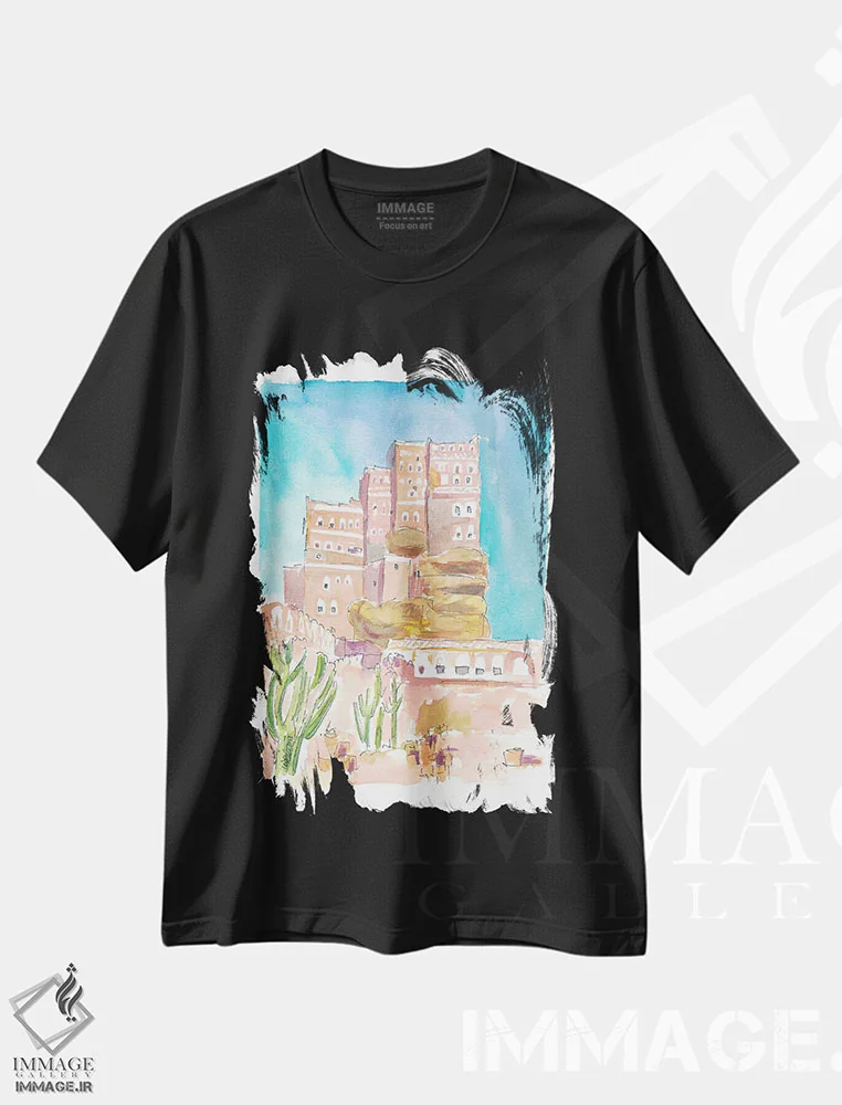 تیشرت مشکی طرح دار – تیشرت معماری ,دارالحجر کاخ تاریخی سنگی نزدیک صنعا یمن اثر مارکوس و مارتینا بلیشنر فروشگاه ایماژ تیشرت طرح معماری ,دارالحجر کاخ تاریخی سنگی نزدیک صنعا یمن اثر مارکوس و مارتینا بلیشنر