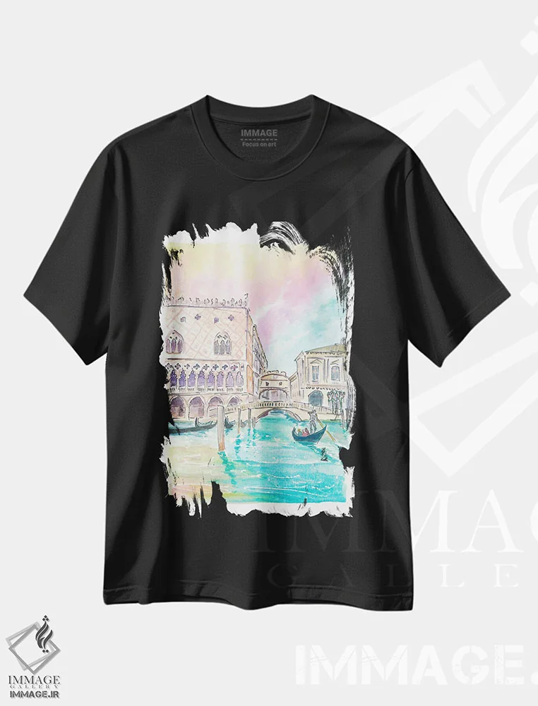 تیشرت مشکی طرح دار – تیشرت هنری ,نمای مشهور سن جورجیو ماجوره در ونیز همراه با گوندولا اثر مارکوس و مارتینا بلیشنر فروشگاه ایماژ تیشرت طرح هنری ,نمای مشهور سن جورجیو ماجوره در ونیز همراه با گوندولا اثر مارکوس و مارتینا بلیشنر