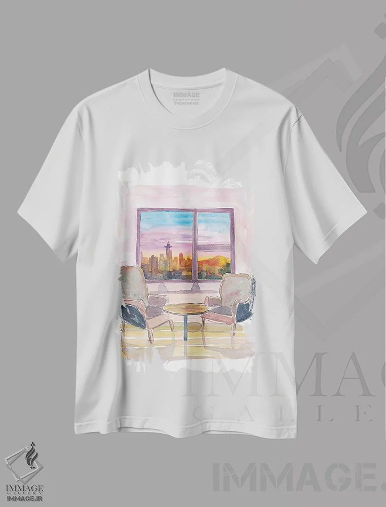 تیشرت سفید طرح دار – تیشرت شهری ,پنجره پانوراما دنج به مرکز شهر سیاتل، واشینگتن اثر مارکوس و مارتینا بلیشنر فروشگاه ایماژ تیشرت طرح شهری ,پنجره پانوراما دنج به مرکز شهر سیاتل، واشینگتن اثر مارکوس و مارتینا بلیشنر