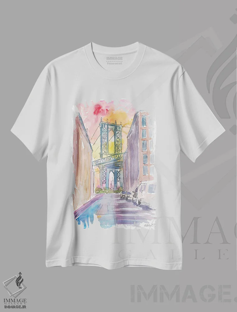 تیشرت سفید طرح دار – تیشرت منظره شهری ,چشم اندازی ویژه به پل منهتن نیویورک در غروب اثر مارکوس و مارتینا بلیشنر فروشگاه ایماژ تیشرت طرح منظره شهری ,چشم اندازی ویژه به پل منهتن نیویورک در غروب اثر مارکوس و مارتینا بلیشنر
