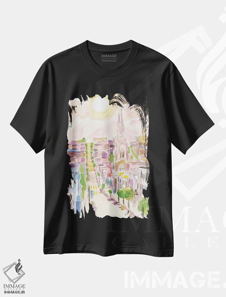 تیشرت مشکی طرح دار – تیشرت شهری آرت ,خیابان ها، تپه ها و نمای آفتابی سان فرانسیسکو در کالیفرنیا اثر مارکوس و مارتینا بلیشنر فروشگاه ایماژ تیشرت طرح شهری آرت ,خیابان ها، تپه ها و نمای آفتابی سان فرانسیسکو در کالیفرنیا اثر مارکوس و مارتینا بلیشنر