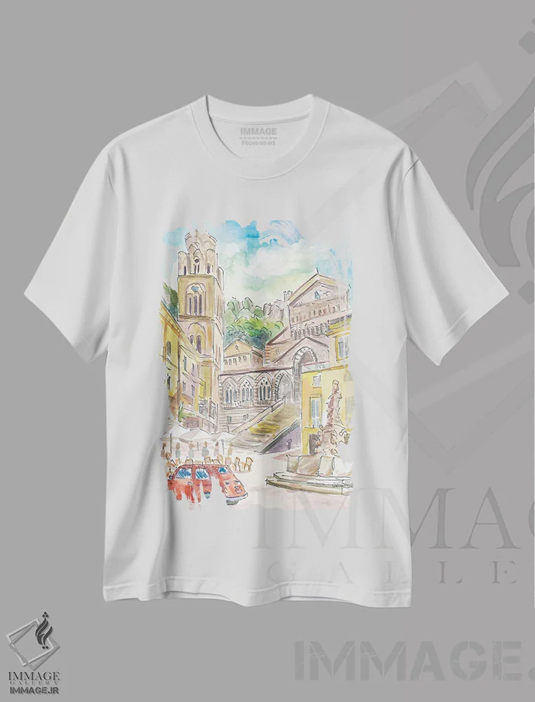 تیشرت سفید طرح دار – تیشرت سفر ,میدان دومو در آمالفی، رانندگی با ماشین قرمز در خلیج ساحل سالرنو اثر مارکوس و مارتینا بلیشنر فروشگاه ایماژ تیشرت طرح سفر ,میدان دومو در آمالفی، رانندگی با ماشین قرمز در خلیج ساحل سالرنو اثر مارکوس و مارتینا بلیشنر