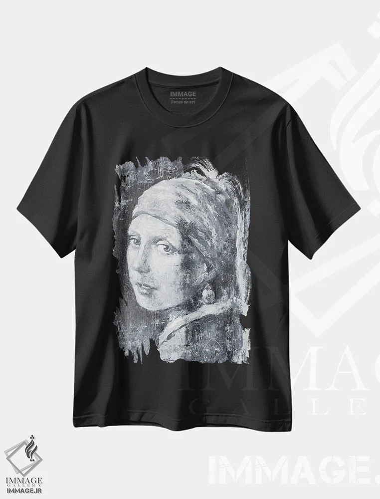 تیشرت مشکی طرح دار – تیشرت هنری ,توس "دختر با گوشواره مروارید" اثر مارگاریتا ایوانوا فروشگاه ایماژ تیشرت طرح هنری ,توس "دختر با گوشواره مروارید" اثر مارگاریتا ایوانوا