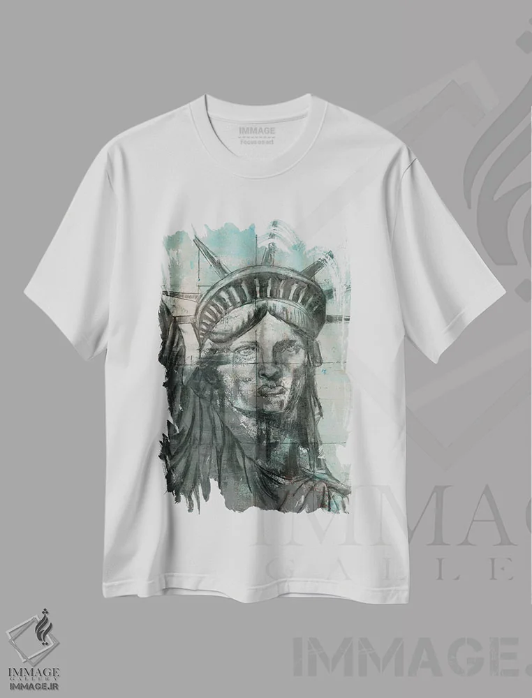 تیشرت سفید طرح دار – تیشرت شهری ,مجسمه آزادی اثر ماری الین کوسون فروشگاه ایماژ تیشرت طرح شهری ,مجسمه آزادی اثر ماری الین کوسون