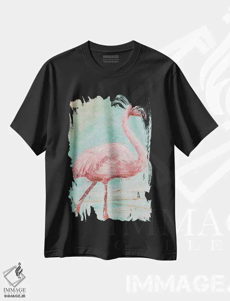 تیشرت مشکی طرح دار – تیشرت پرندگان ,فلامینگوی صورتی I اثر ماری الین کوسون فروشگاه ایماژ تیشرت طرح پرندگان ,فلامینگوی صورتی I اثر ماری الین کوسون
