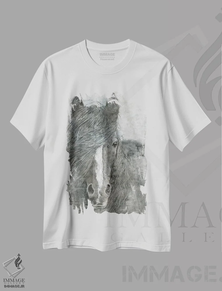 تیشرت سفید طرح دار – تیشرت حیوانات ,اسب در باد اثر ماری الین کوسون فروشگاه ایماژ تیشرت طرح حیوانات ,اسب در باد اثر ماری الین کوسون
