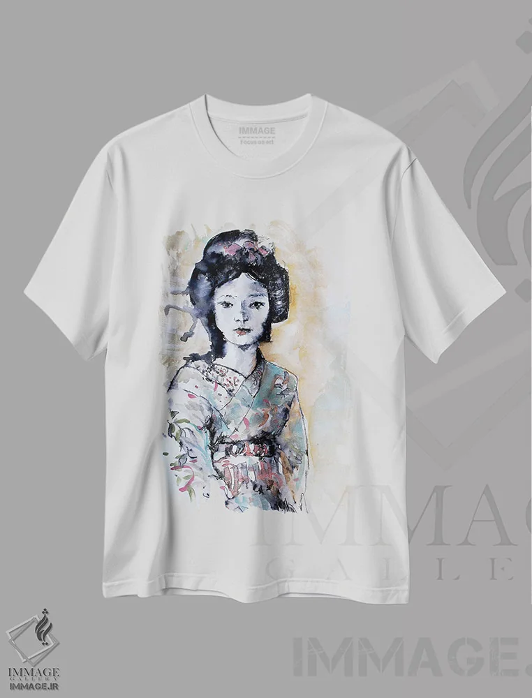 تیشرت سفید طرح دار – تیشرت هنری ,گیشا چهارم اثر مارینا دل پوزو فروشگاه ایماژ
