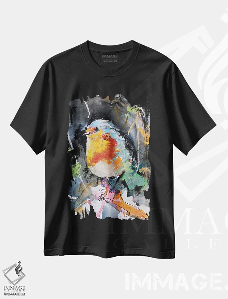 تیشرت مشکی طرح دار – تیشرت حیوانات ,سینه سرخ اثر مارینا دل پوزو فروشگاه ایماژ